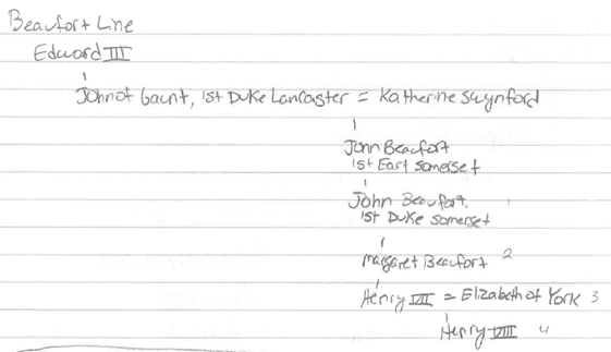 This is the line I most frequently use for Henry. It goes through Katherine Swynford, one of my favorite characters in history. It is also the line that goes through the most women, as it goes from Katherine to her daughter Joan, then her granddaughter Cecily. Duchess of York Cecily Neville has her own badass story, one that I urge you to look into. This line deals with several love stories; John of Gaunt and Katherine Swynford, Cecily Neville and Richard, 3rd Duke of York, and Edward IV and Elizabeth Woodville.