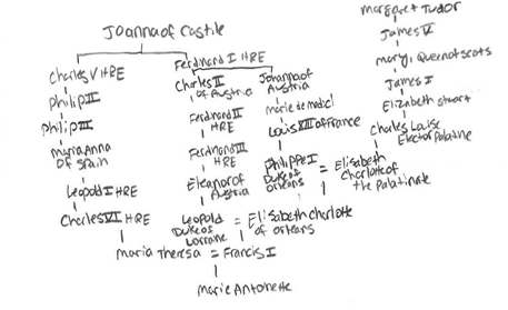 Marie Antoinette: Her mother was the last Hapsburg and her father was descended from Elizabeth Stuart (the grandmother of George I, the first Hanoverian king).