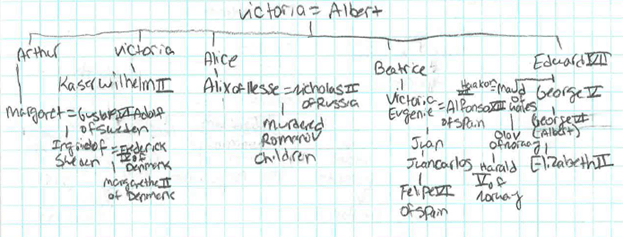 The Romanovs: or at least the murdered children of Emperor Nicholas II. He married Alexandra Feodorovna (Alix of Hesse) who was a granddaughter of Victoria.